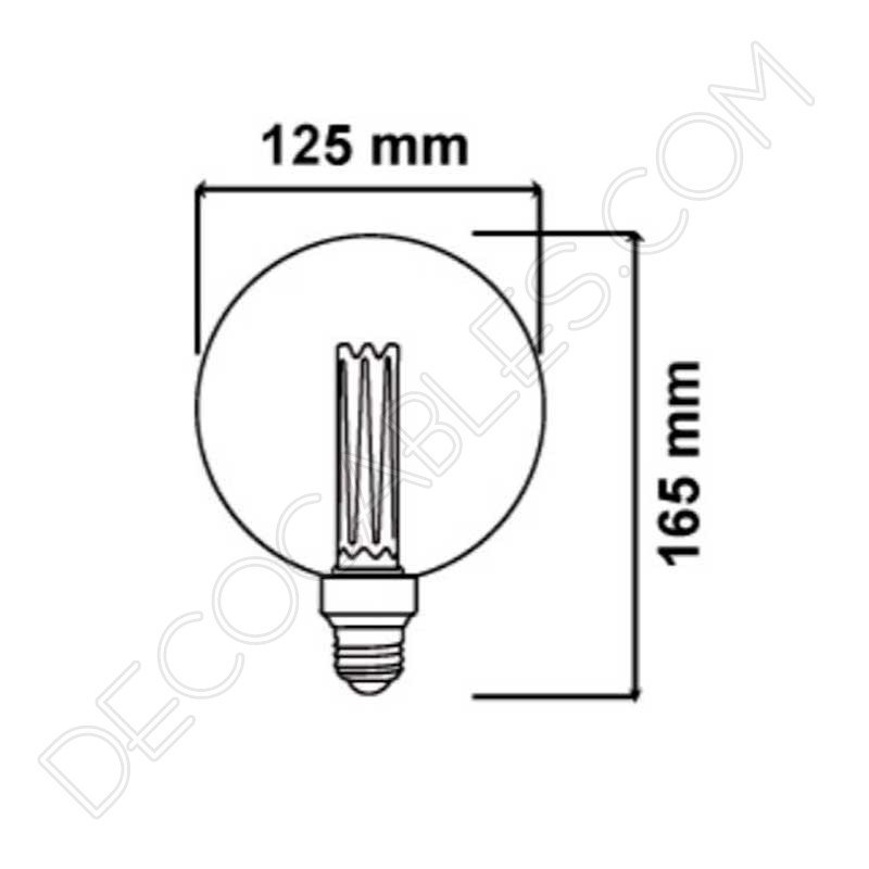 Aunque no es una bombilla con filamentos reales, sorprende lo bien que se crea el efecto. Es un led oculto en el casquillo, que ilumina una pieza de metacrilato cortada y grabada a láser, dando el efecto visual de filamentos como las bombillas clásicas.