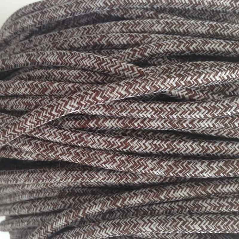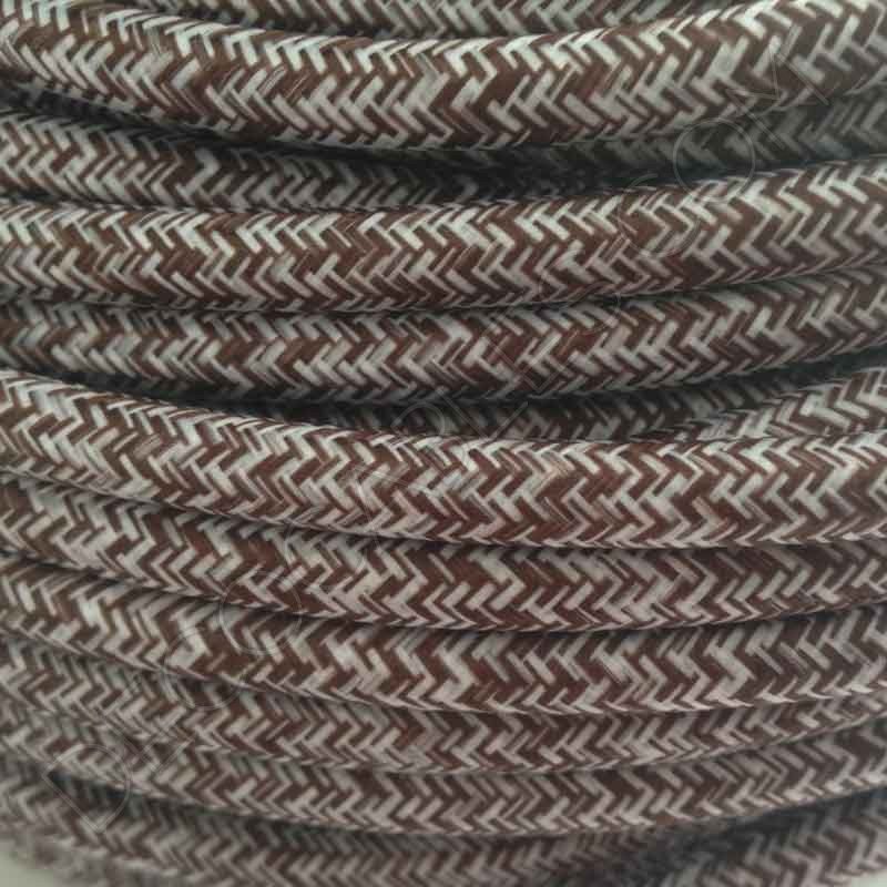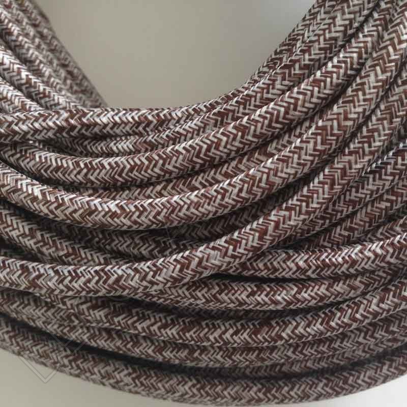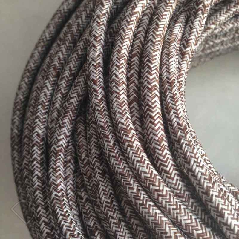 Cable eléctrico de tela jaspeado liso en color marrón y blanco