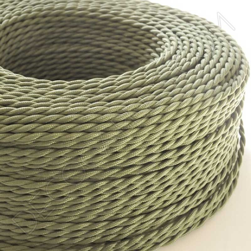 Cable eléctrico trenzado de seda Verde oliva