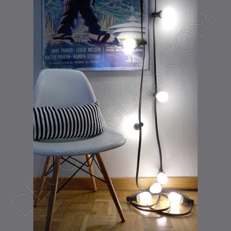 Guirnalda de luces de feria para exterior o interior, con manguera plana flexible, clavija con toma de tierra, gancho de caucho y portalámparas E27 estanco.
