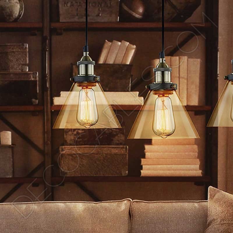 Lámpara colgante con tulipa con Cristal Vintage. Diseño actual y elegante, perfecta para crear el ambiente deseado en cualquier rincón de tu hogar o negocio. Ideal para resaltar las bombillas de filamento, LED o incandescentes, especialmente las de tipo tubular o pebetero.