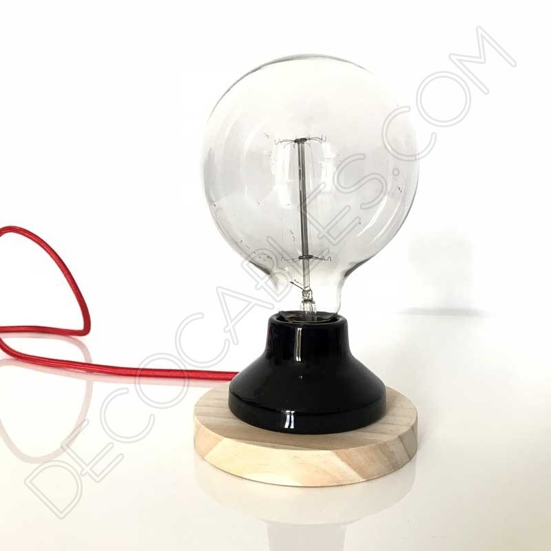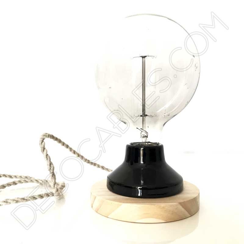 Lampara de sobremesa en madera de pino con portalámparas cerámico esmaltado negro. Este modelo único y minimalista queda perfecto en cualquier mesa supletoria.